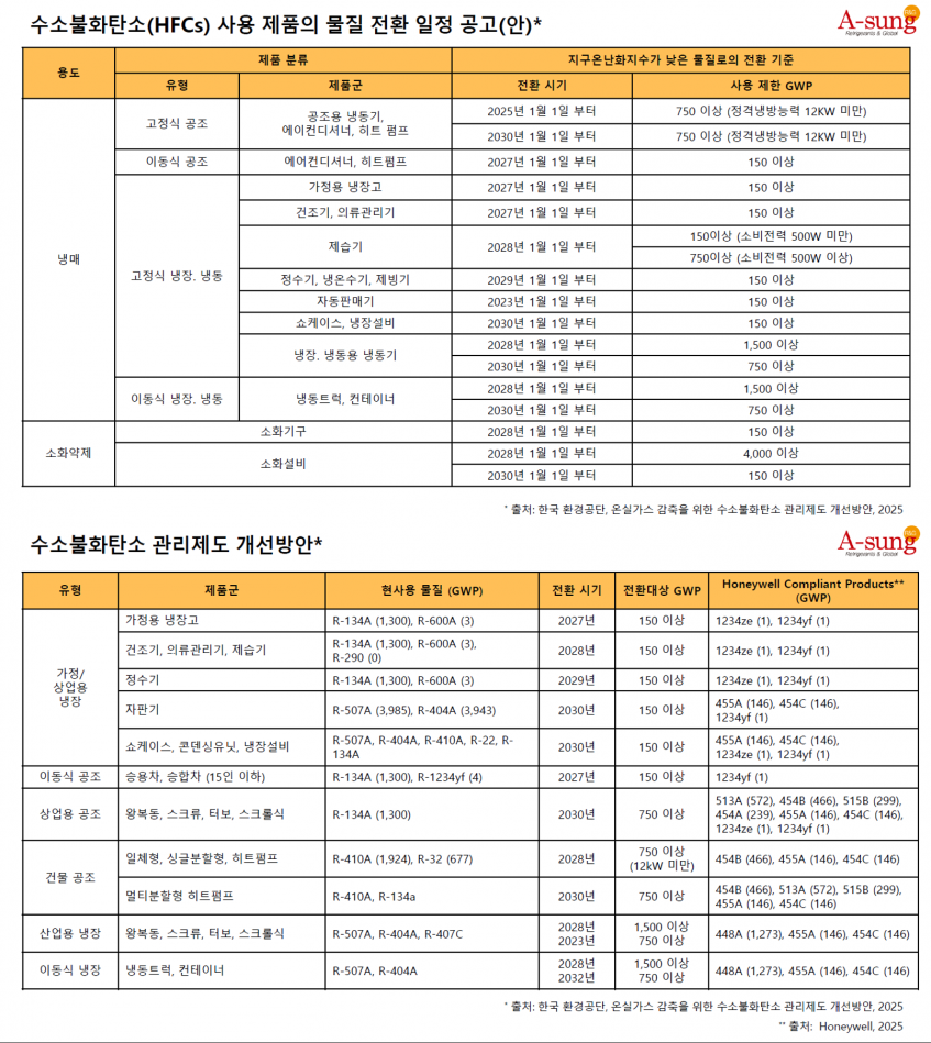 수소불화탄소 사용제품의 물질 전환 일정 공고(안) 2025년